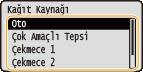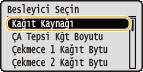 tuşlarını kullanarak <Kağıt Kaynağı> seçeneğini belirleyin ve