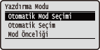 Eğer tüm yazdırma modları <Kapalı> olarak ayarlanmışsa, makine, <Mod Önceliği> için belirtilmiş yazdırma modunda işletilir.