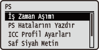 <CMYK Sim. Profili> öğesi <Hiçbiri> öğesinden farklı bir değere ayarlanırsa, bu birimi <Açık> olarak ayarlamak üzerine yazdırmaya olanak tanımaz.