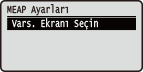 MEAP üzerindeki ana ekran sayfasına ilişkin ayar öğeleri, kısa açıklamalarla birlikte listelenir. Varsayılan ayarlar kama sembolü (
