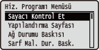 Yazdırılan toplam sayfa sayısını görüntüleyebilir ve dâhili sistem bilgilerini yazdırabilirsiniz. İşletim panelindeki  (  ) öğesine bastığınızda, Yardımcı yazılım menüsü görüntülenir. Aşağıda açıklanmış ayarları, makine çevrimdışı iken belirtebilirsiniz.