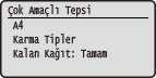 Belirtilmiş geçerli kağıt boyutunu ve kağıt türünü ve her bir kağıt kaynağı için kalan mevcut kağıt seviyesini görüntülemek için seçin.