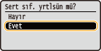 Yazılımdan ya da donanımdan sıfırlama yapmadan önce, diğer kullanıcıların makineyi kullanmadığından emin olun, aksi halde, tüm yazdırma verileri henüz yazdırılmadan önce silinir.