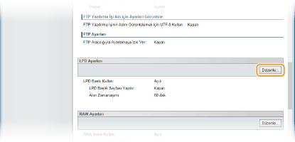 Yazdırma için LPD kullandığınızda, bu onay kutusunu seçin. LPD yazdırma kullanılmadığı zaman, onay kutusunun işaretini kaldırın.