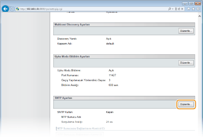 NTP/SNTP sunucusu ile iletişimi test etme[Ayarlar/Kayıt]