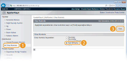 [Cihaz Kontrolü] öğesini tıklayın, [Sert Sıfırlama] öğesini seçin ve ardından [Yürüt] öğesini tıklayın.