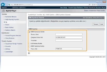 [SMB Sunucusu Kullan] onay kutusunu seçin ve gerekli ayarları belirtin.