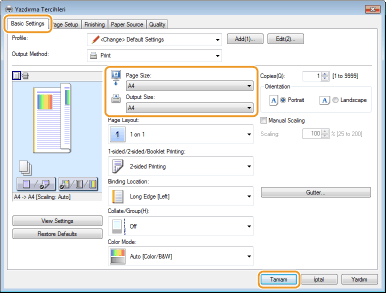 [Output Size] öğesinden kağıt boyutunu seçin.