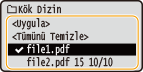 tuşlarını kullanarak <Dosya Seçin> seçeneğini belirleyin ve