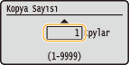 1 - 9999 arası olacak biçimde kopya sayısı belirtin. Bir miktar girmek için sayı tuşlarını kullanın ve