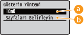 öğesine basın. Tüm seçimleri temizlemek için,<Tümünü Temizle> seçeneğini belirleyin ve
