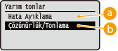 <Hata Ayıklama> <Açık> olarak ayarlandığında <Çözünürlük/Tonlama> görüntülenmez.