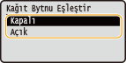 Eğer <Kağıt Seçin> içeriğinde <Oto> biçiminde ayarlanmışsa, bu ayar kullanılamaz.