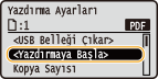 <Yazdırmaya Başla> seçeneğini belirleyin ve