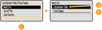 ile <Çözünürlük/Tonlama> öğesini seçin