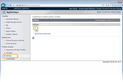 Makinenizden dışa aktarılan verileri yükleyin (içe aktarın). Makinenizle aynı model ise, başka bir makineden ayarları da içe aktarabilirsiniz.
