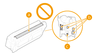 ) çizilmesini veya ışığa maruz kalmasını önlemek için elektrik bağlantılarına ( ) veya toner kartuşu belleğine ( ) dokunmayın.![]() Gerekmedikçe toner kartuşunu ambalaj malzemesinden veya bu makineden çıkarmayın.