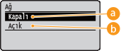 Bir LAN bağlantı noktası, bir ağı kullanmak için bir LAN kablosunu bağlayan bir arayüzdür. Makineyi USB aracılığıyla kullandığınızda, LAN bağlantı noktası üzerinden gerçekleştirilebilecek kötü niyetli üçüncü taraf izinsiz girişlerini bloke edecek biçimde ağı tamamen kapatmak için, LAN bağlantı noktasını devre dışı bırakabilirsiniz.