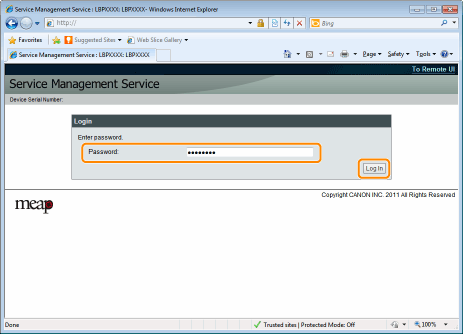 올바른 암호를 입력하고 [Login]을 클릭합니다.