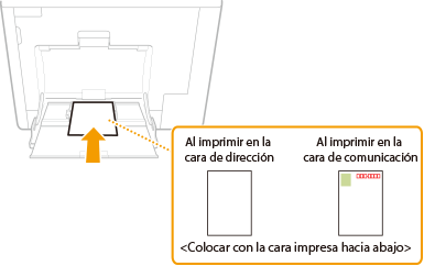 En esta sección se describe cómo cargar sobres en la orientación deseada, así como los procedimientos que debe seguir antes de cargar sobres o tarjetas. Para ver el procedimiento general para cargar sobres en la bandeja multiuso, consulte Carga de papel en la bandeja multiuso.