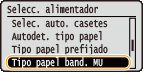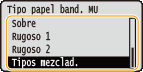 Si cambia con frecuencia el tamaño del papel que carga, puede especificar <Tipos mezclad.> para no tener que preocuparse de cambiar la opción de tipo de papel cada vez que imprima. Sin embargo, tenga en cuenta que, en este caso, no se verificará antes de imprimir el tipo de papel especificado en el controlador de impresora.