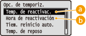 en el panel de control. También puede utilizar la opción Tiempo de reposo automático para establecer automáticamente el modo de reposo del equipo si permanece inactivo durante un período de tiempo especificado. Puede especificar las opciones para cambiar el intervalo con que se activa la función de reposo automático o poner el equipo en modo de reposo a una hora concreta.