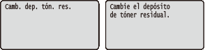 Cuando la capacidad restante del depósito de tóner residual es mínima, aparece un mensaje correspondiente en la pantalla. También puede comprobar en la pantalla el estado del depósito de tóner residual.