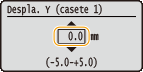 Tras confirmar la dirección y la distancia para ajustar, especifique una posición de impresión ajustada. Puede ajustar la posición de impresión en vertical en un intervalo de -5,0 a +5,0 mm en incrementos de 0,1 mm, y en horizontal en un intervalo de -2,25 a +2,25 mm en incrementos de 0,25 mm.