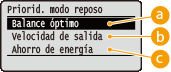 Este elemento está disponible si <Modo reposo> está configurado como <Alto (Reposo)>. Paso al modo de reposo