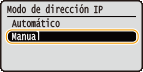 Seleccione <Usar DHCP>, <Usar BOOTP> o <Usar RARP> y pulse