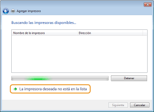 Seleccione [Conectar a una impresora en Internet o en una red doméstica o de oficina:], introduzca el destino de conexión y haga clic en [Siguiente].