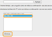 Seleccione una dirección IP para eliminar y haga clic en [Eliminar].