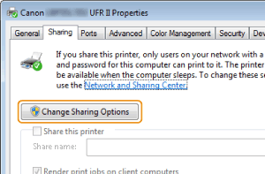 Installation of the additional drivers starts. Wait until the [Sharing] tab is displayed back.