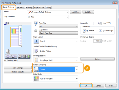 When printing copies of multi-page documents, select [Collate] to print complete sets in sequential page order. This function is useful when preparing handouts for meetings or presentations.