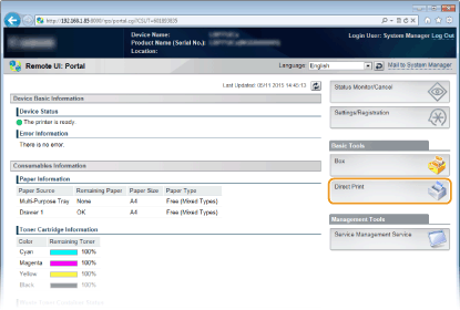 You can print a file from a Web browser (Remote UI) without opening the file. In addition, you can also print a PDF file on the Web by only specifying the URL.