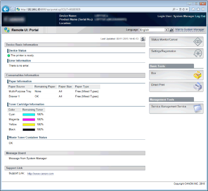 You can perform all the Remote UI operations and settings. Enter the appropriate System Manager password in [Password]. Setting the System Manager Password