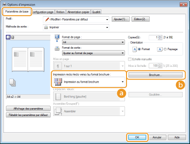 Sélectionnez [Impression au format brochure], dans [Impression recto/recto verso/au format brochure ]