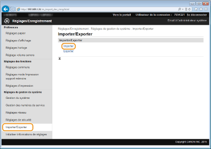 Chargez (importez) les données qui ont été exportées depuis l'appareil. Vous pouvez également importer des paramètres depuis un autre appareil s'il est du même modèle que le vôtre.