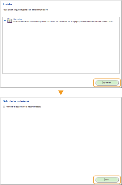 Quite la marca de todas las casillas de verificación excepto [Manuales], y haga clic en [Instalar].