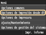 Especifique las opciones de Impresión USB. Las opciones seleccionadas se utilizan como opciones predeterminadas de la función Impresión USB. Cambios en las opciones de impresión USB predeterminadas