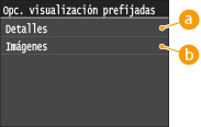 Seleccione esta opción si desea mostrar una lista con los nombres de archivo o las miniaturas de vista preliminar al acceder a los archivos de un dispositivo de memoria USB.