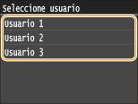 Si se conservan en la memoria documentos protegidos de dos o más usuarios, aparecerá la pantalla <Seleccione usuario> antes que la pantalla <Seleccionar archivo>.Seleccione su nombre de usuario.