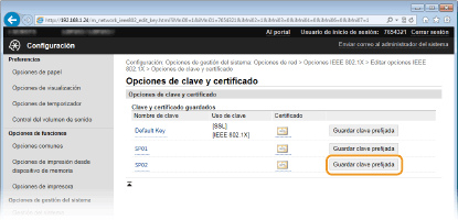 Haga clic en [Guardar clave prefijada] en la parte derecha del par de claves que desee utilizar para la autenticación del cliente.