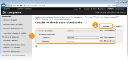 Introduzca hasta 24 caracteres alfanuméricos en el nombre de usuario. [Cambiar contraseña]