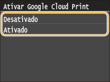 Ative a função Google Cloud Print da máquina. Também é possível desativar a função Google Cloud Print da máquina.