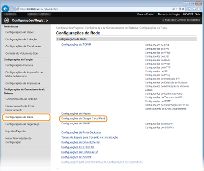 Você precisa ativar o Google Cloud Print. Clique em [Editar], selecione a caixa de seleção [Usar o Google Cloud Print] e clique em [OK].
