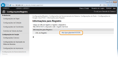 Para saber mais sobre o procedimento de registro, consulte o manual de instruções de seu dispositivo móvel ou o site do Google Cloud Print.