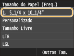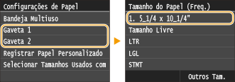 Ao selecionar o tamanho do papel para a gaveta de papel