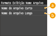 Selecione <Nome do Arquivo Curto> ou <Nome do Arquivo Longo>