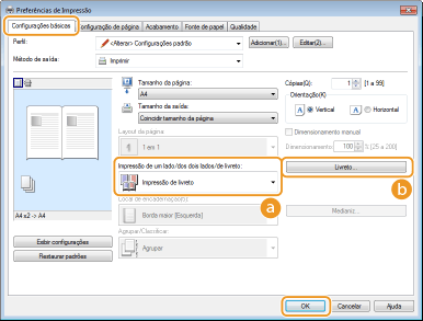 Clique em [Livreto] para especificar as configurações detalhadas conforme necessário